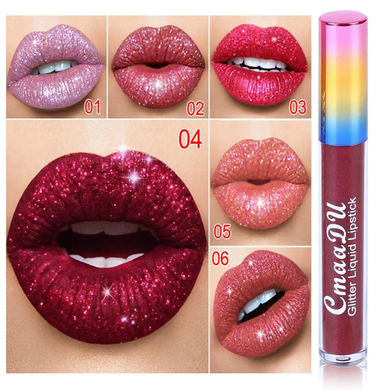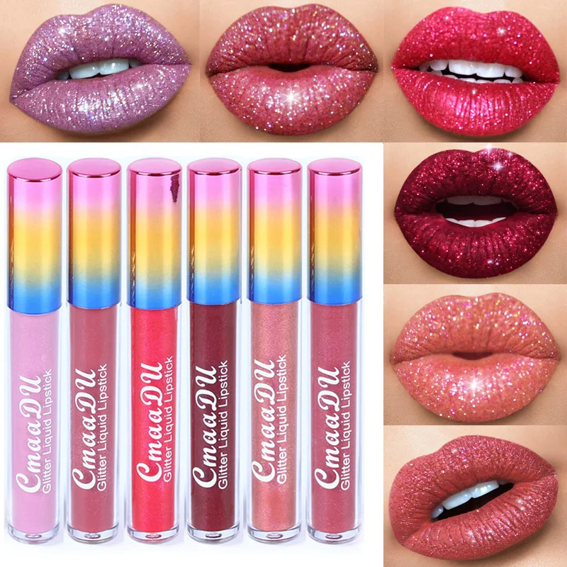 rouge a levre liquide à paillettes, brillant diamant, mat, nacré, hydratant, imperméable, maquillage longue durée, beauté des femmes